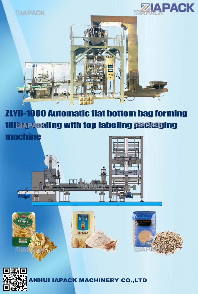 Deze machine wordt op grote schaal gebruikt voor het verpakken van tarwemeel, granen en pasta in een zak met platte bodem en etikettering aan de bovenkant. Het hele systeem inclusief producttoevoermachine, productweegmachine, zakvormende vulmachine en lineaire zakvouwende etiketteringsafdichtingsverpakkingsmachine. Dit type is baksteen type dat kan staan en gemakkelijk als groep kan worden verpakt. Gemakkelijker te transporteren