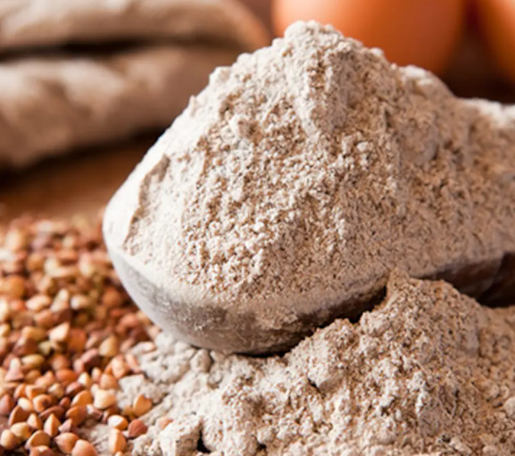 De hele lijn kan automatisch het kleine zakje vormen en vullen met 30 gram boekweitmeel. Vervolgens het kleine zakje overbrengen naar de weegmachine en vullen in een grote zak.