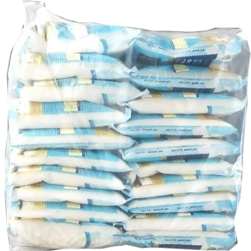 Deze lijn is een speciaal ontwerp voor suiker, rijstzout en tarwemeel en graanproductiefabriek. De hele lijn kan automatisch het kleine gewicht van rijstsuiker, zout, tarwemeel of melkpoeder wegen, de zak vormen die het product vult en de zak verzegelt en vervolgens de zakjes transporteert naar balenpersmachine om in grote PE-zak te persen.
