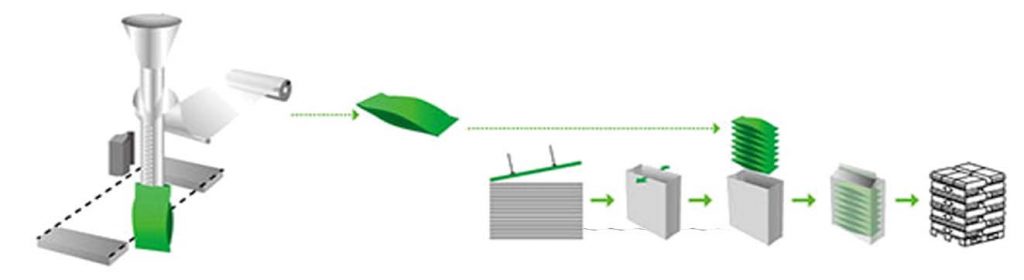 Deze machine is geschikt om een kleine zak in een grote zak te verpakken. De machine kan automatisch de zak maken en een kleine zak vullen en vervolgens de grote zak verzegelen. Deze machine inclusief de balgeenheden: