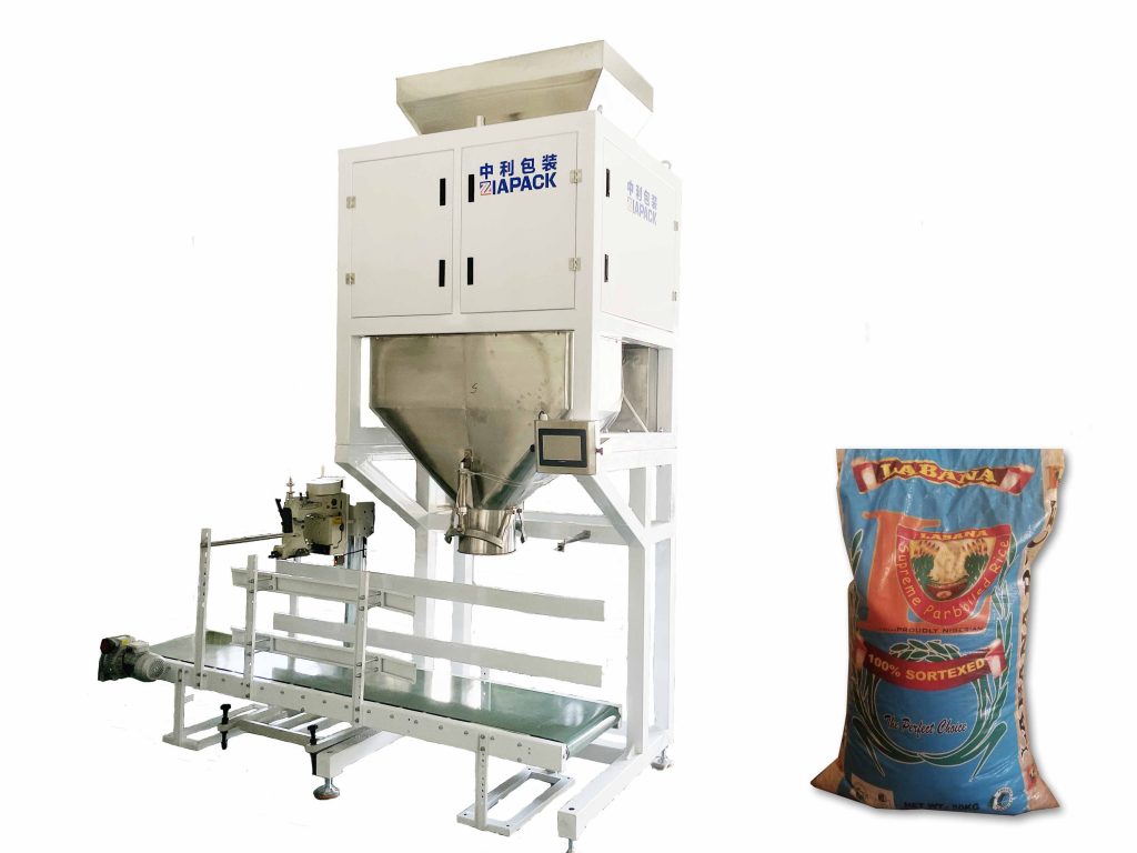 Deze machine-eenheid inclusief een set dubbele emmers weegmachine voor het meten van 30-50kg. Een set 3 meter uitvoertransportband, een set PE-zakverwarmingssluitmachine en een set jute zaksteekmachine. De hele machine kan automatisch het product wegen, product vullen, automatisch zak stiksels en warmteafdichting. U hoeft alleen de zak handmatig in te voeren.