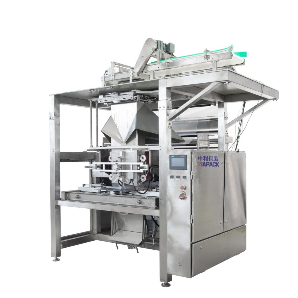 Deze machine is geschikt om een kleine zak in een grote zak te verpakken. De machine kan automatisch de grote zak maken en de kleine zak vullen en vervolgens de grote zak verzegelen. Deze machine inclusief de balgunits: