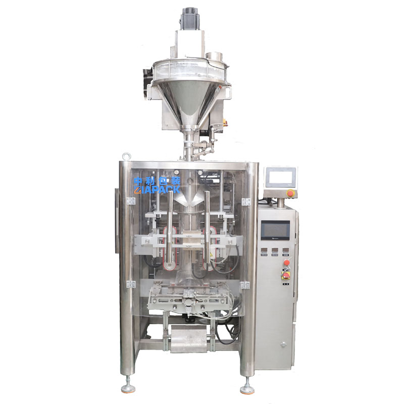 Deze machine is speciaal ontworpen voor het verpakken van poederproducten in een zak met kussenbodem. Het wordt veel gebruikt voor het verpakken van tarwemeel en chemisch poeder. Deze machine-eenheid omvat één set ZL2000-vijzelvulmachine, één set ZL520 verticale zakvormende vulmachine. één set Open mond zaktransportmachine en besturingssysteem. De hele machinebesturing door PLC en werkt via een kleurenaanraakscherm.